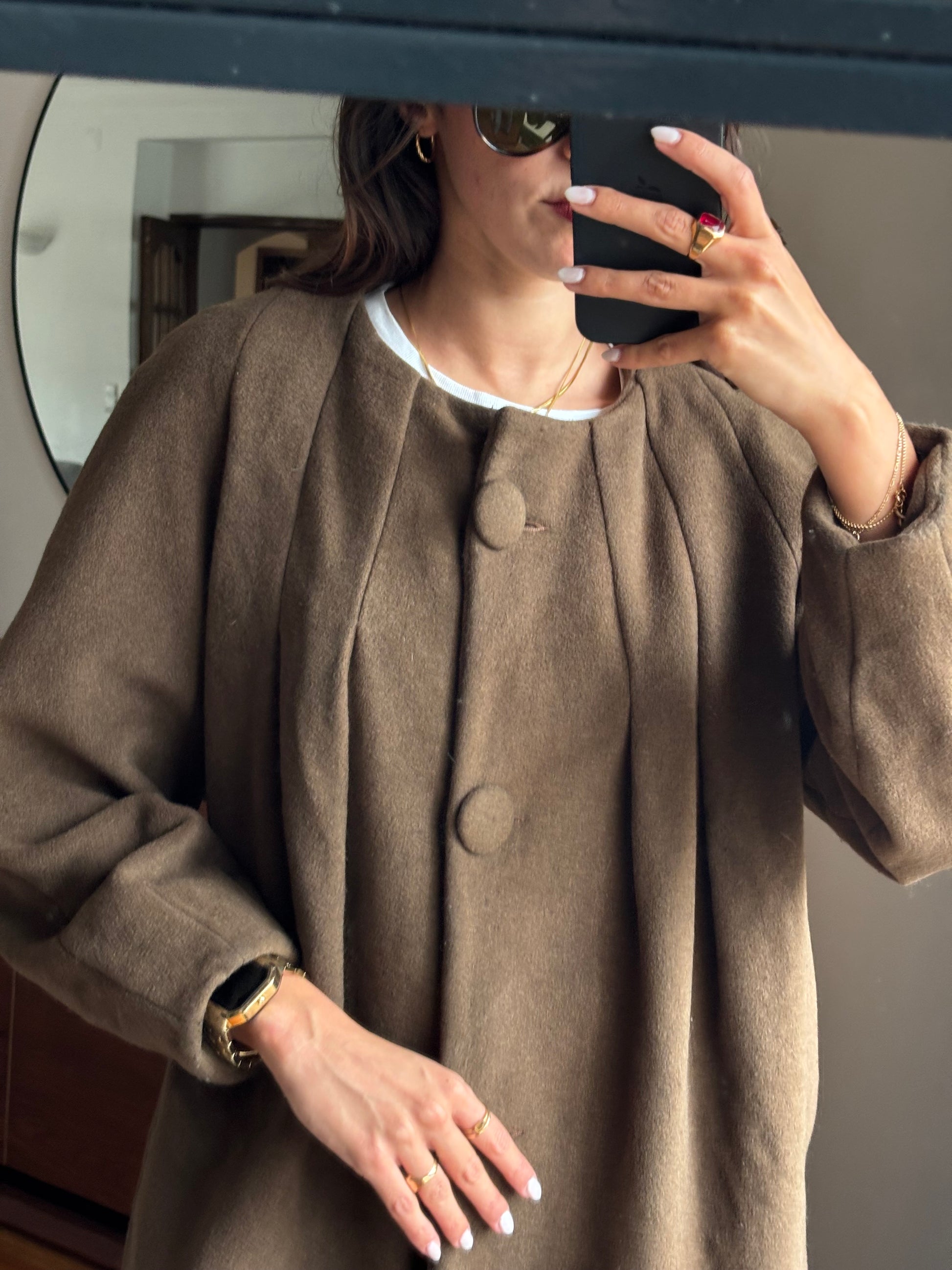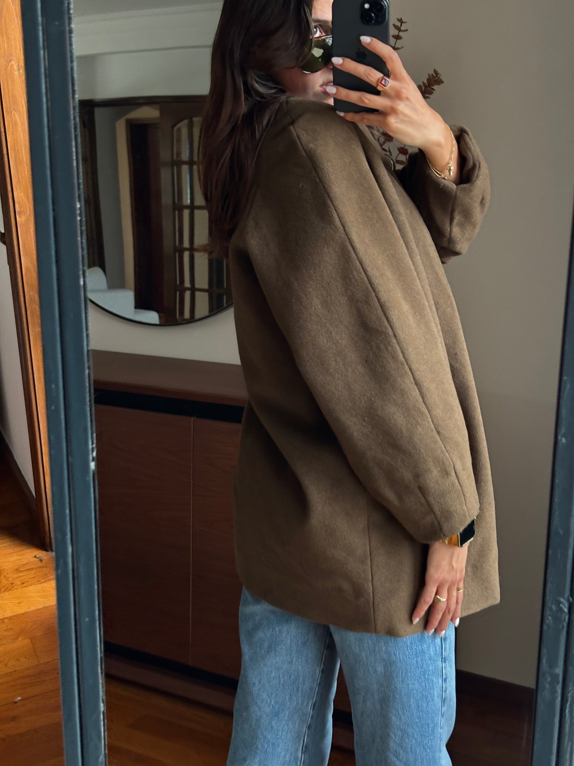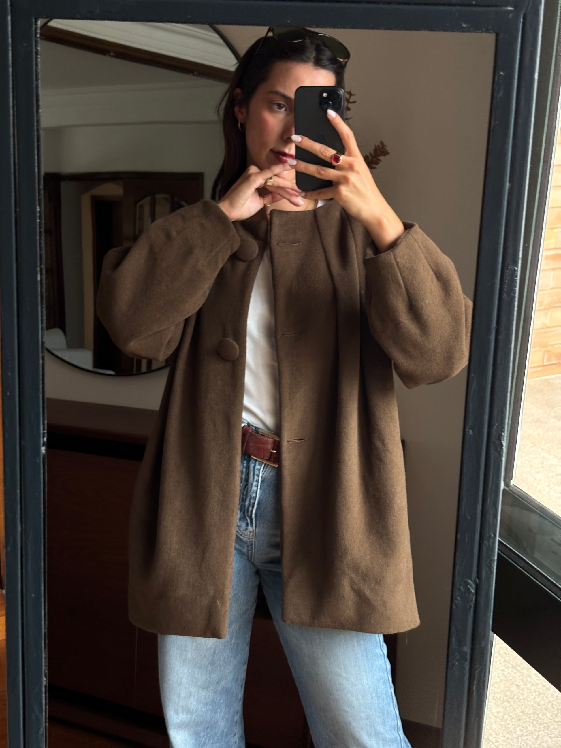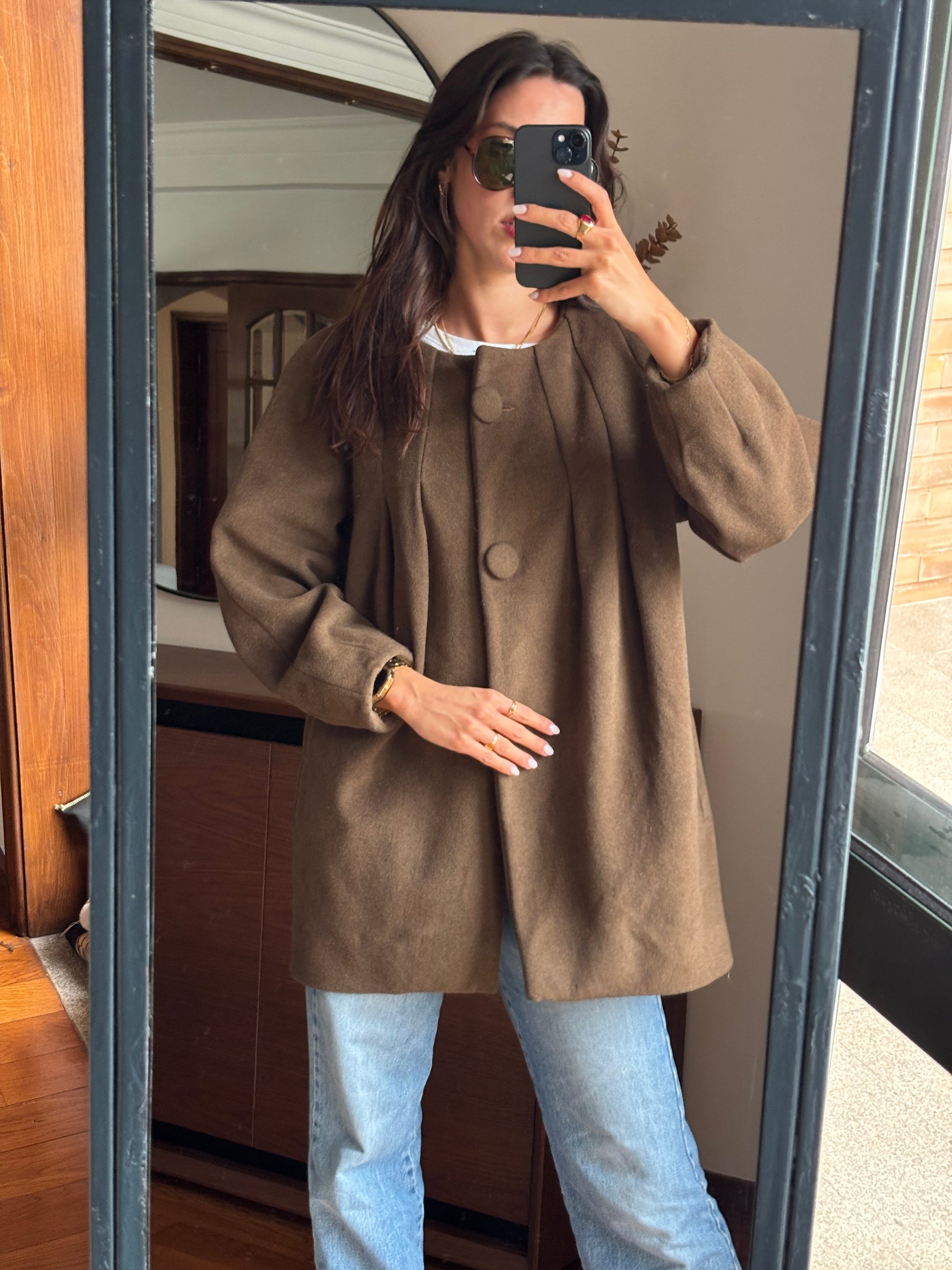 Casaco vintage de excelente qualidade, com um corte elegante e estruturado. Confeccionado numa mistura nobre de fibras naturais — lã, alpaca e angorá — que lhe conferem um toque macio, quente e muito confortável. O forro interior acetinado, num tom alaranjado rico, acrescenta um detalhe sofisticado e diferenciador