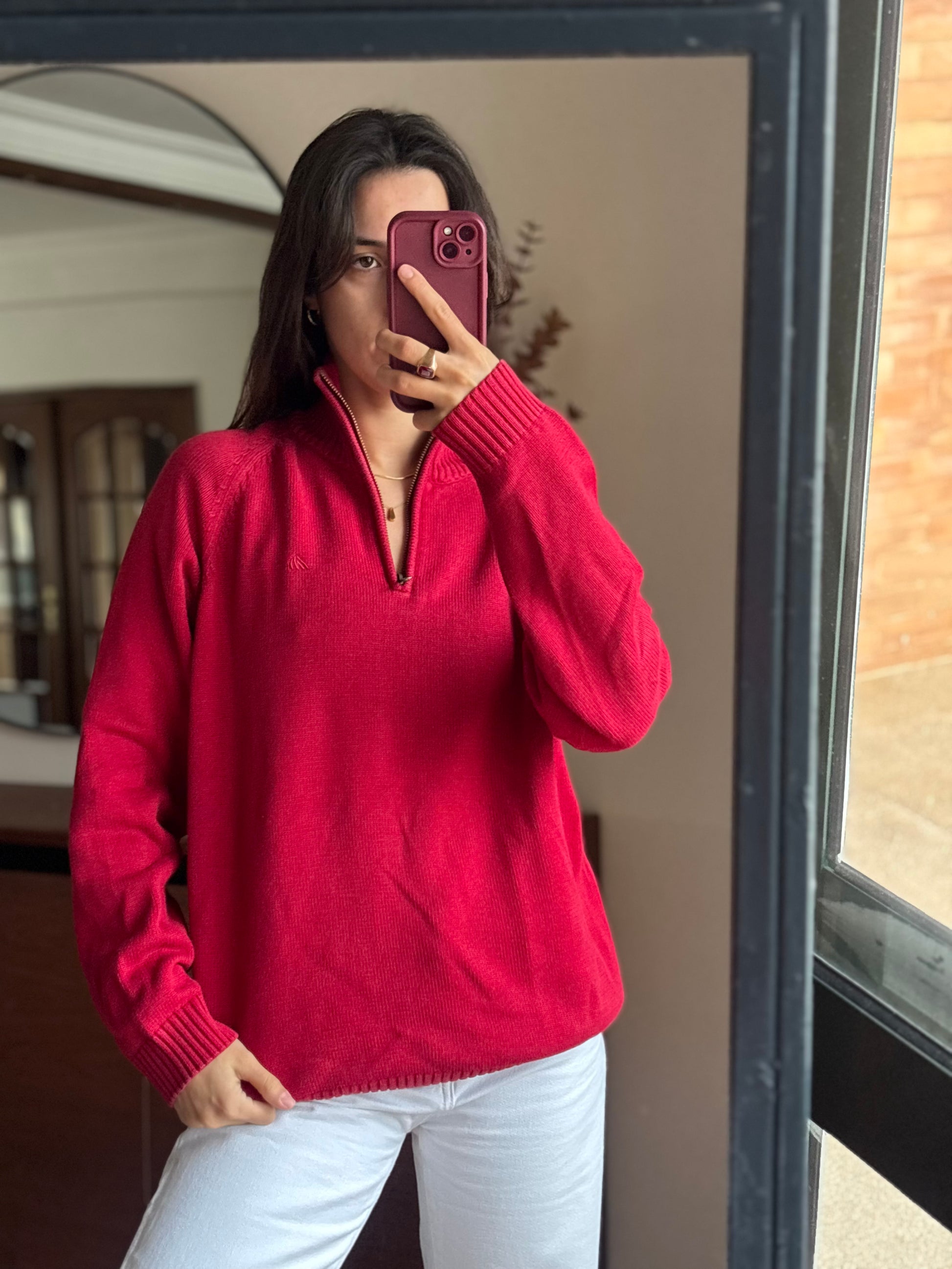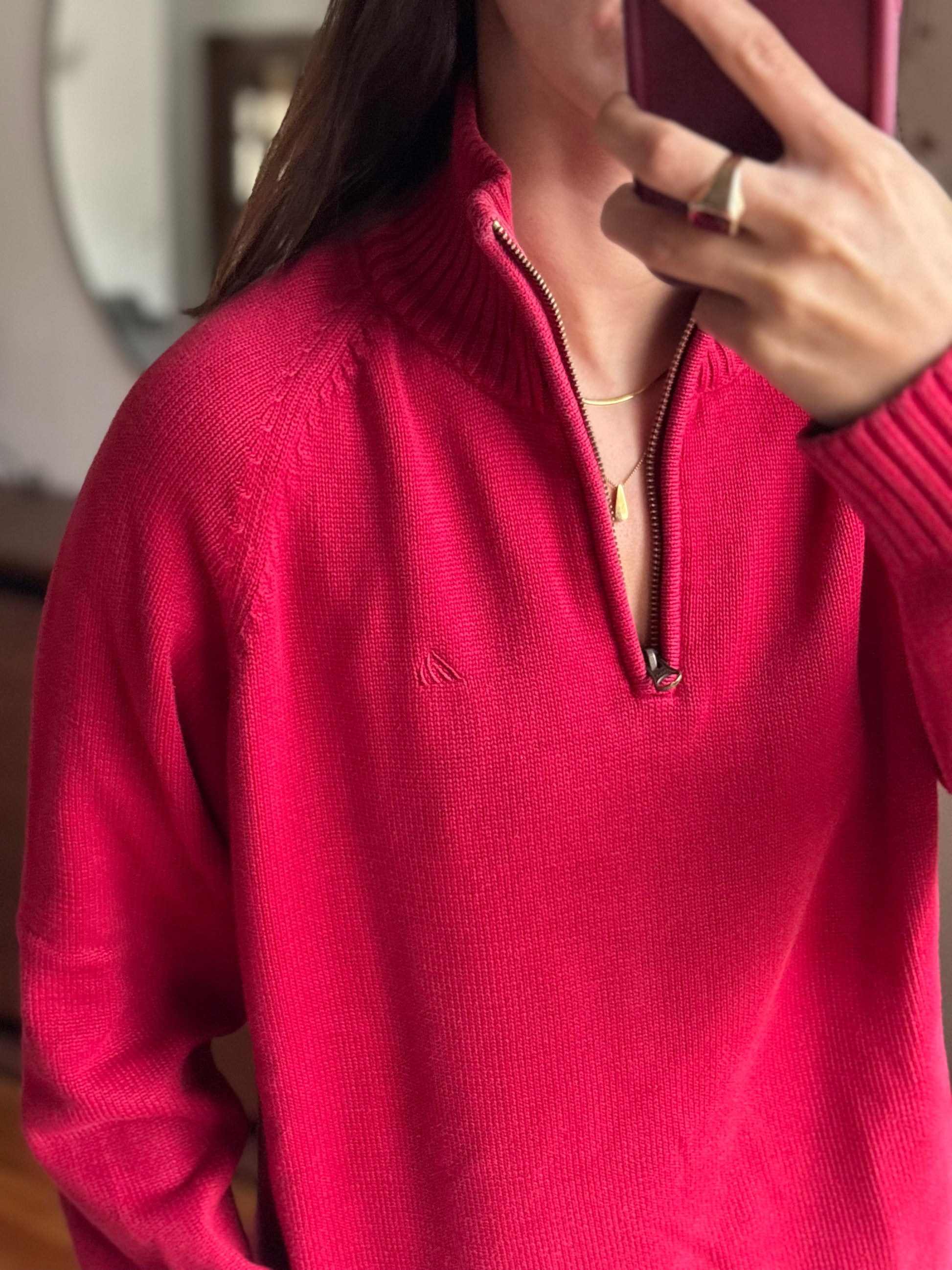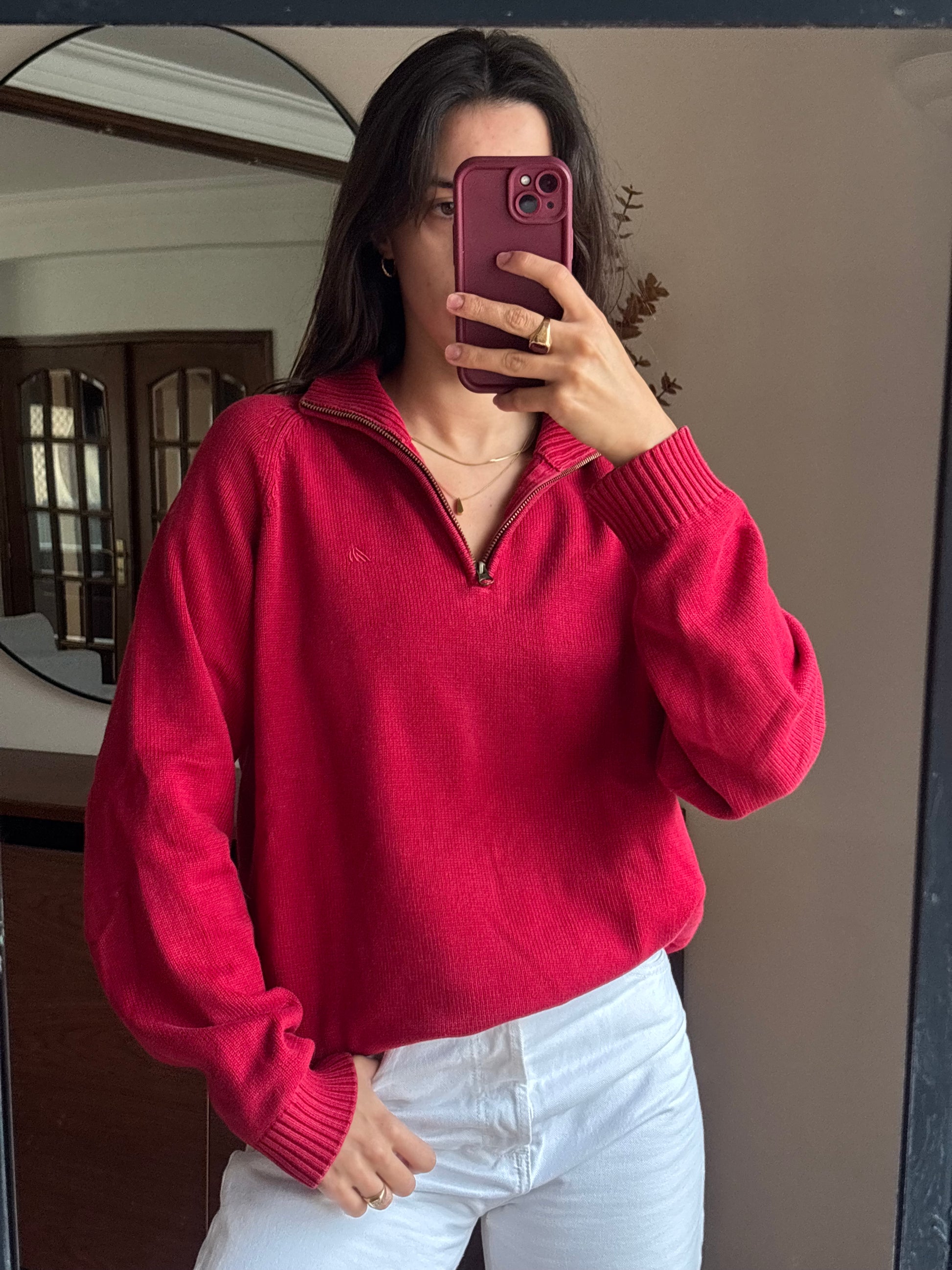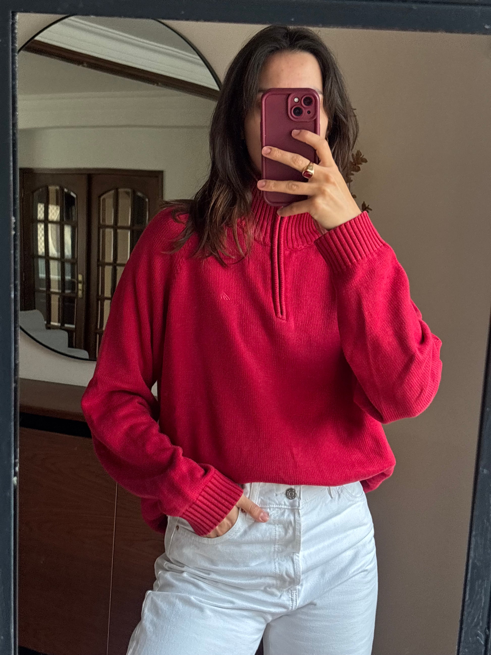 Camisola vibrante em 100% algodão da Quebramar, num tom vermelho super bonito e com aquele fit descontraído que fica mesmo bem no corpo. O detalhe do fecho half-zip dá-lhe um ar sporty chic, e o algodão deixa-a macia, confortável e sem qualquer borboto. Uma malha perfeita para quem gosta de peças básicas mas com personalidade, fácil de usar e combinar.