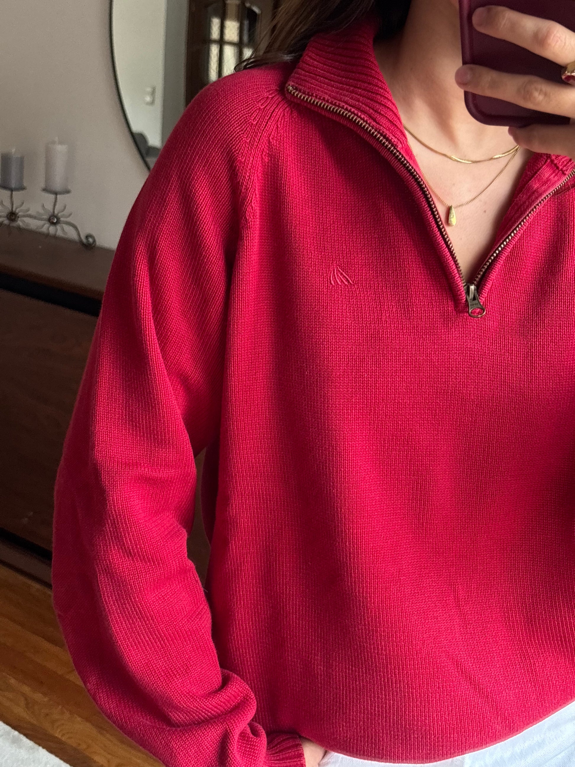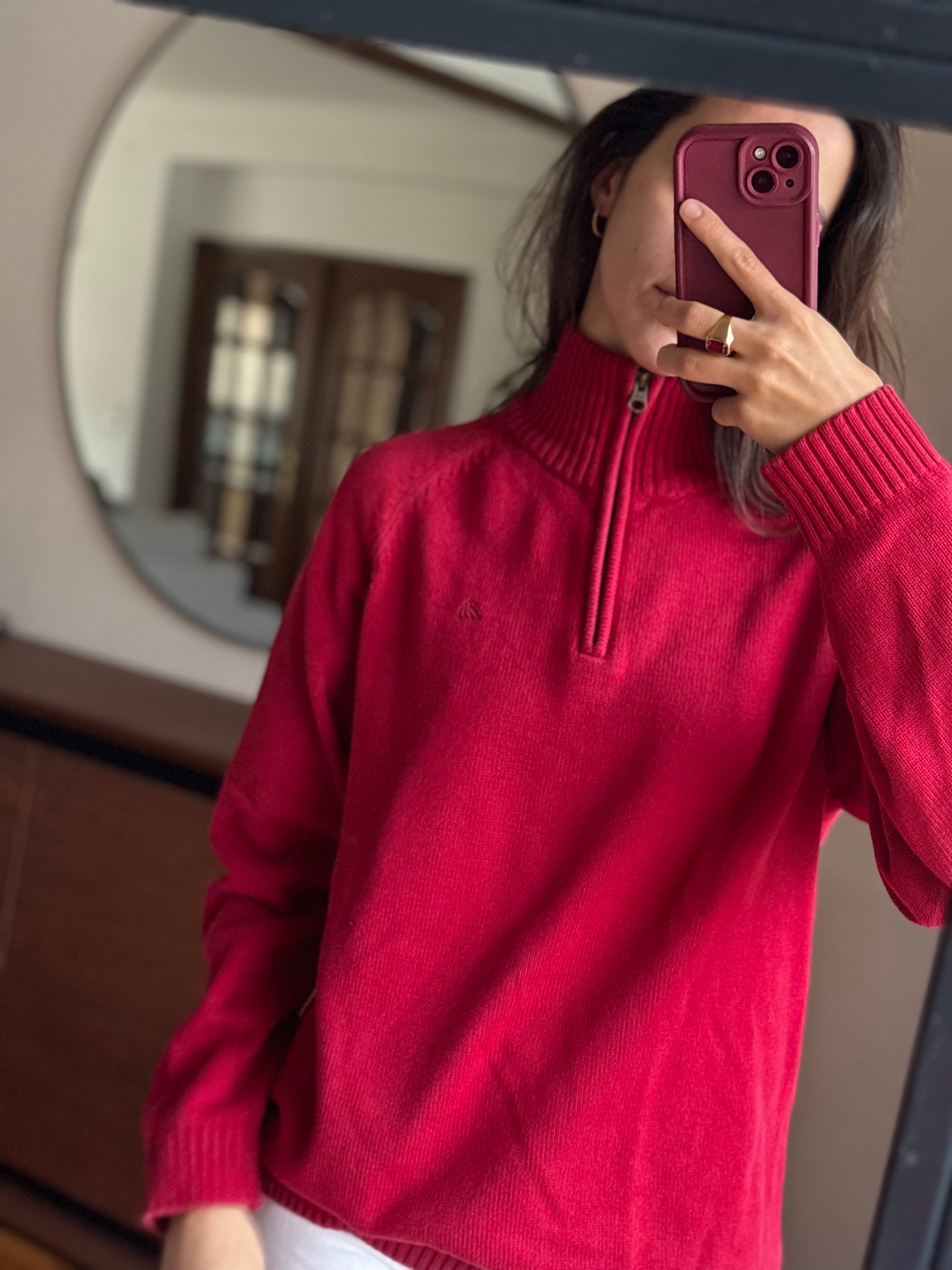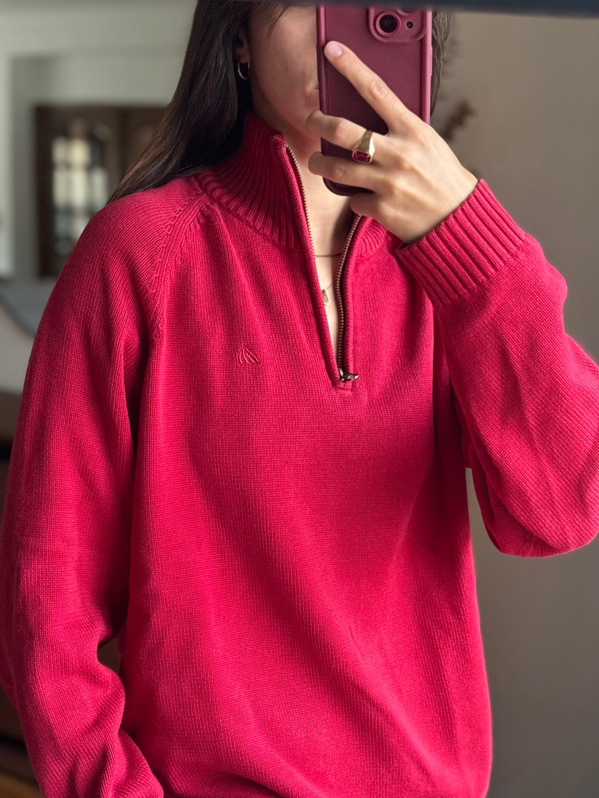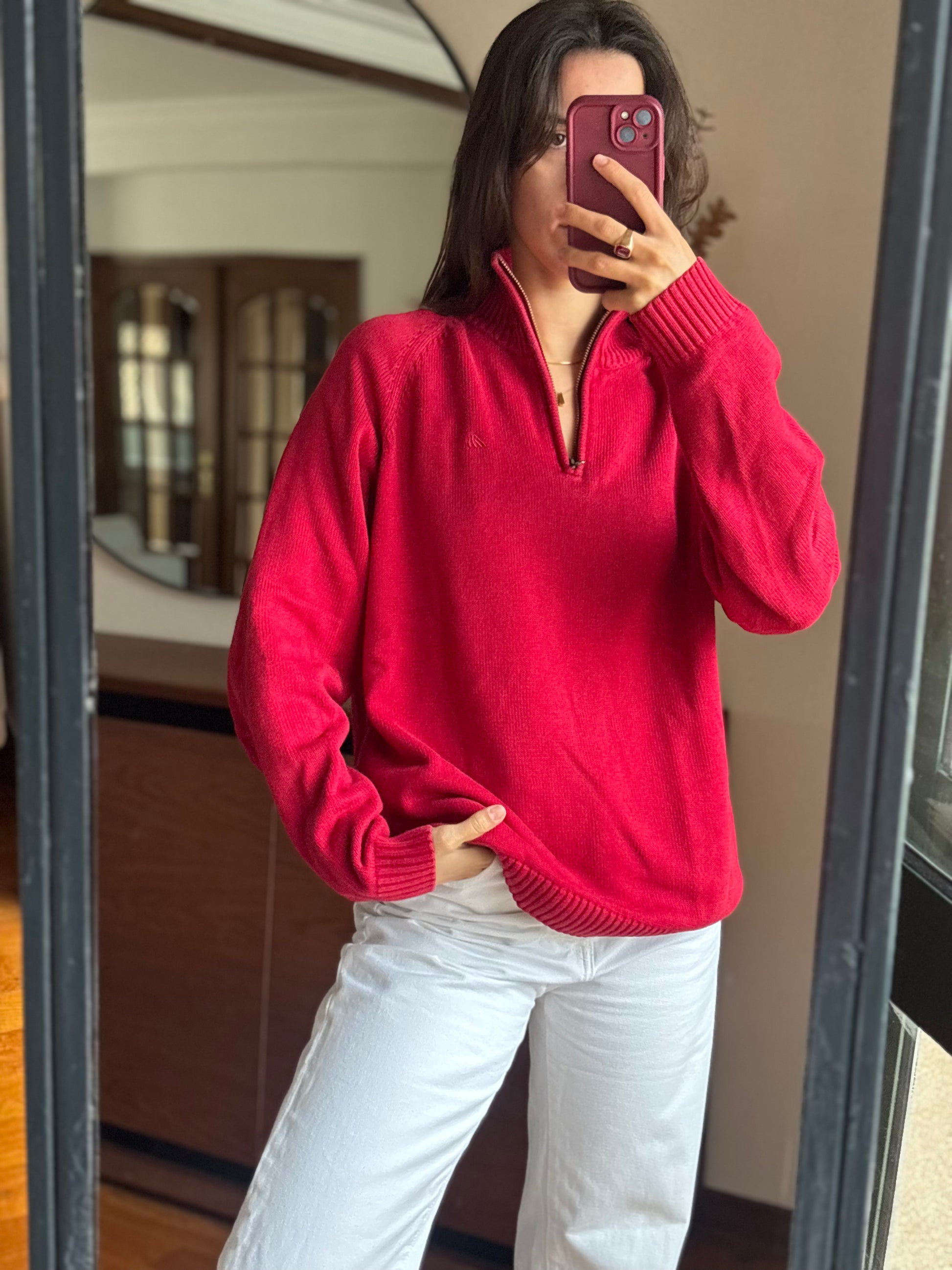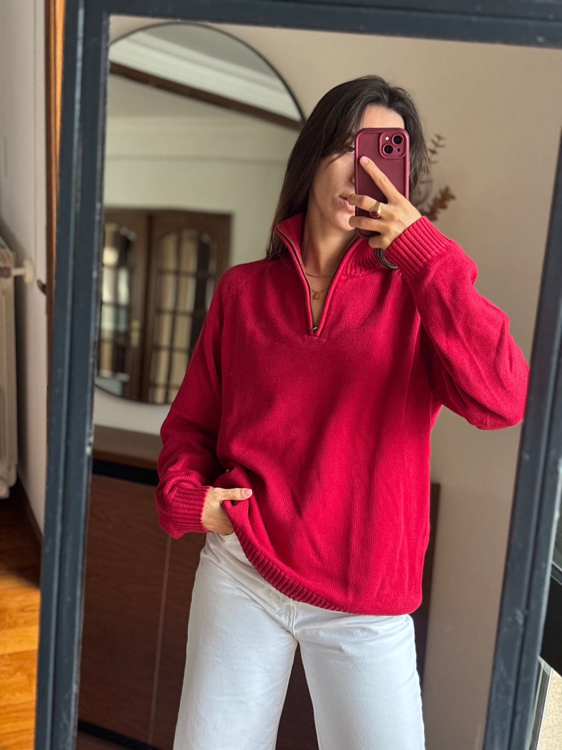 Camisola vibrante em 100% algodão da Quebramar, num tom vermelho super bonito e com aquele fit descontraído que fica mesmo bem no corpo. O detalhe do fecho half-zip dá-lhe um ar sporty chic, e o algodão deixa-a macia, confortável e sem qualquer borboto. Uma malha perfeita para quem gosta de peças básicas mas com personalidade, fácil de usar e combinar.