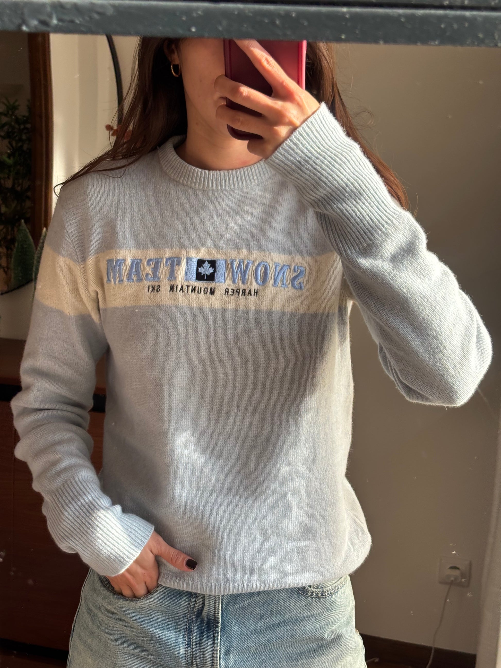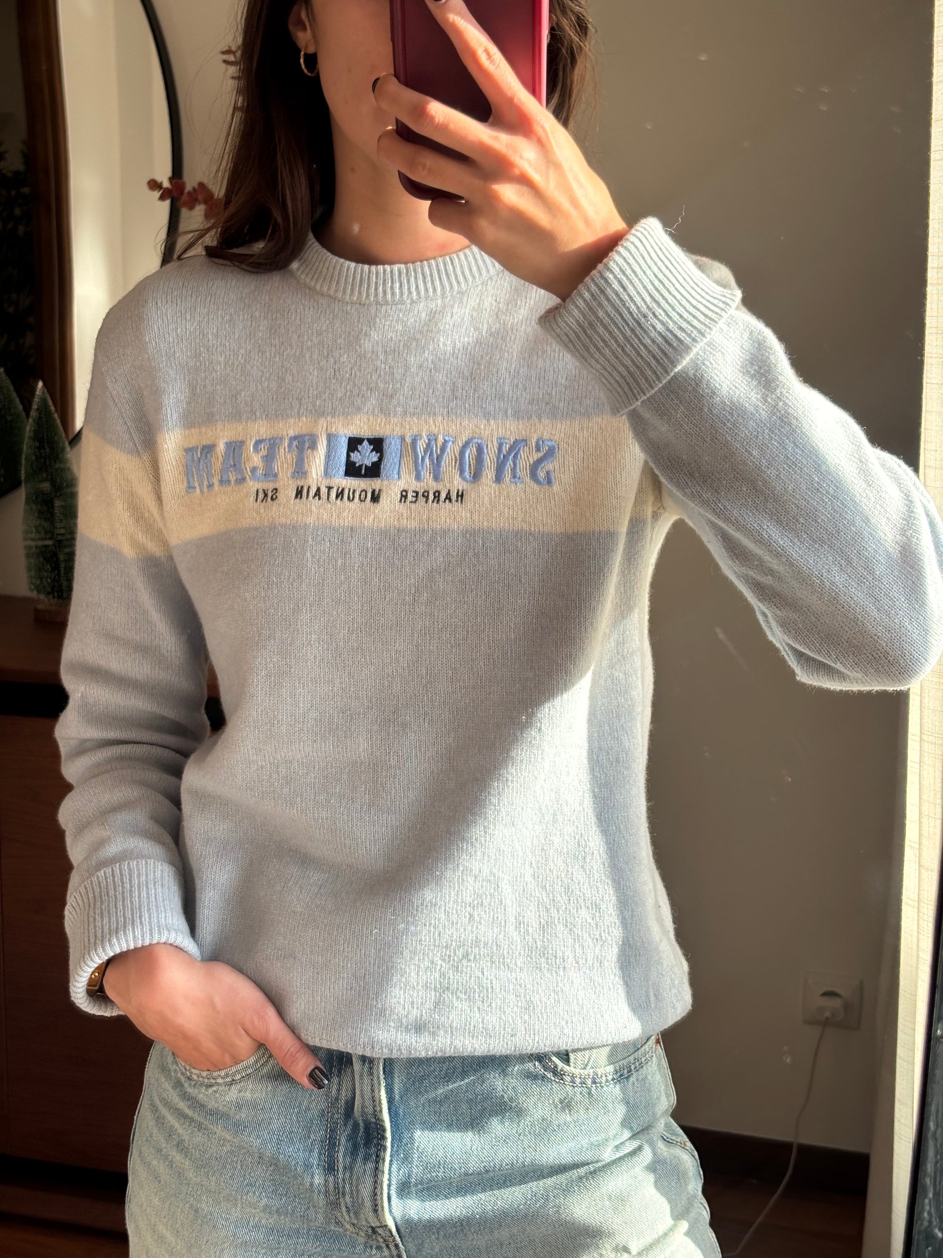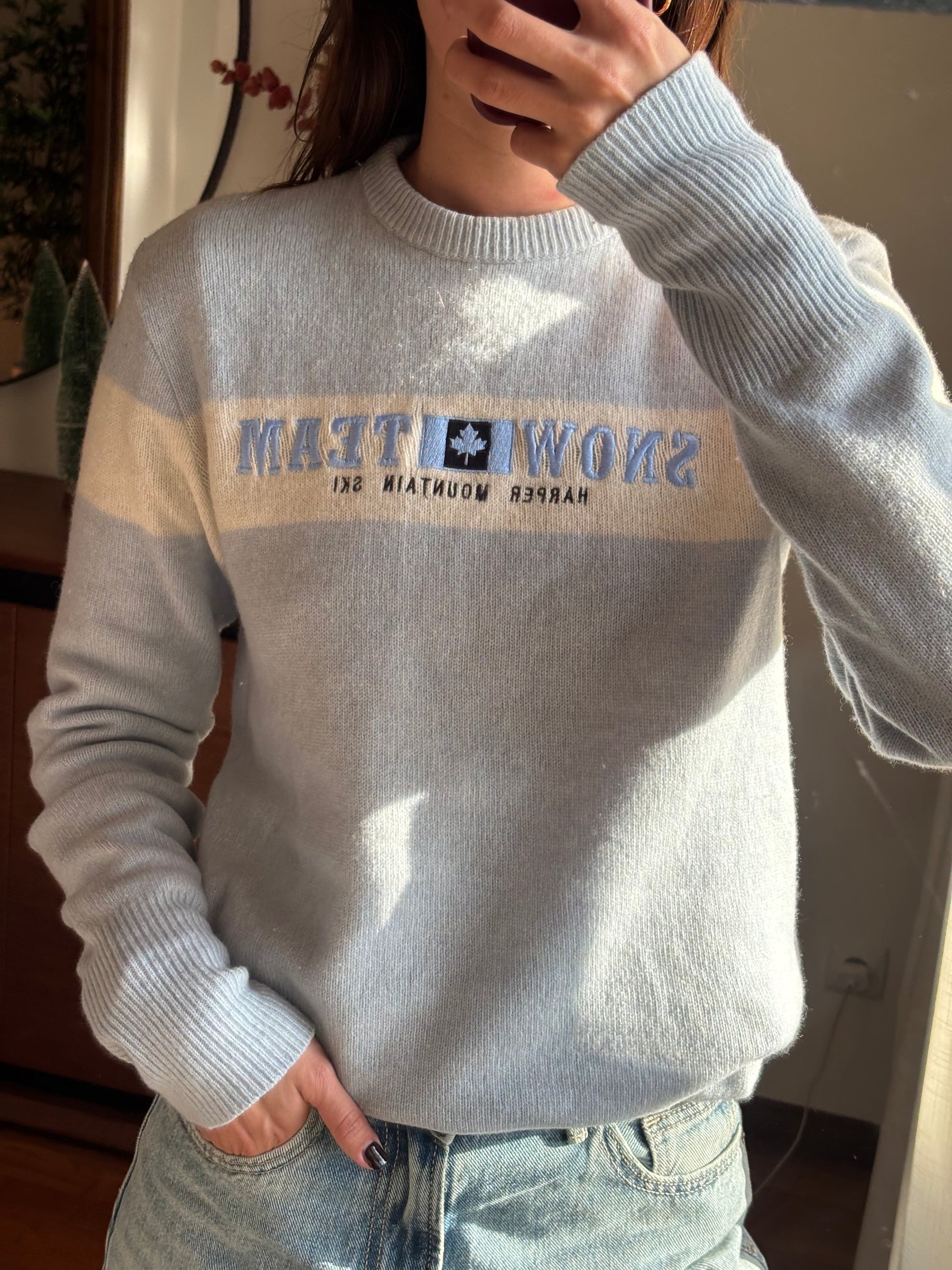 Malha Sacoor em tom azul claro com detalhe de faixa contrastante e lettering no peito. Uma camisola de malha leve, confortável e com um ar casual clássico, perfeita para o dia a dia. O corte é direito, assenta bem no corpo sem marcar e funciona tanto sozinha como por baixo de casacos ou blazers. Peça versátil, intemporal e fácil de conjugar, com aquele toque sporty elegante característico da marca.